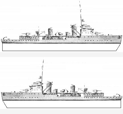 - "War Emergency" O class destroyers - 4" dual purpose guns: