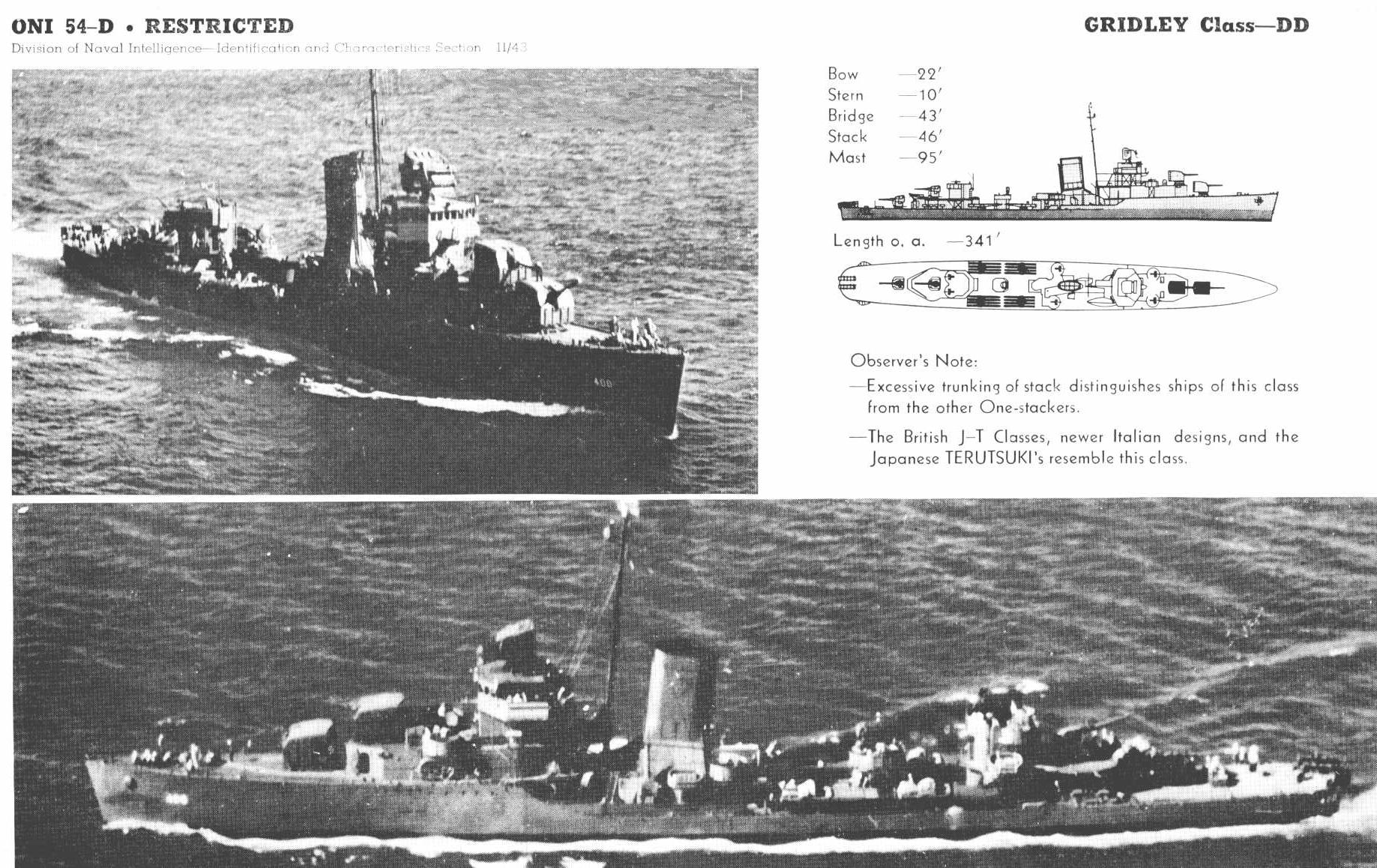 The Gridleys and their Bagley near-sisterships were at Guadalcanal from the very outset, but their lack of radar and uncompetitive night optics usually led the Americans into being surprised. Even worse, our torpedoes occasionally turned back on our launching ships, which could cause great excitement. On the other hand, it appears that one of these ships did manage to mistakenly torpedo our Australian ally's heavy cruiser HMAS Canberra in the first Guadalcanal Battle of Savo (Island, 7/8 August 1942)!
