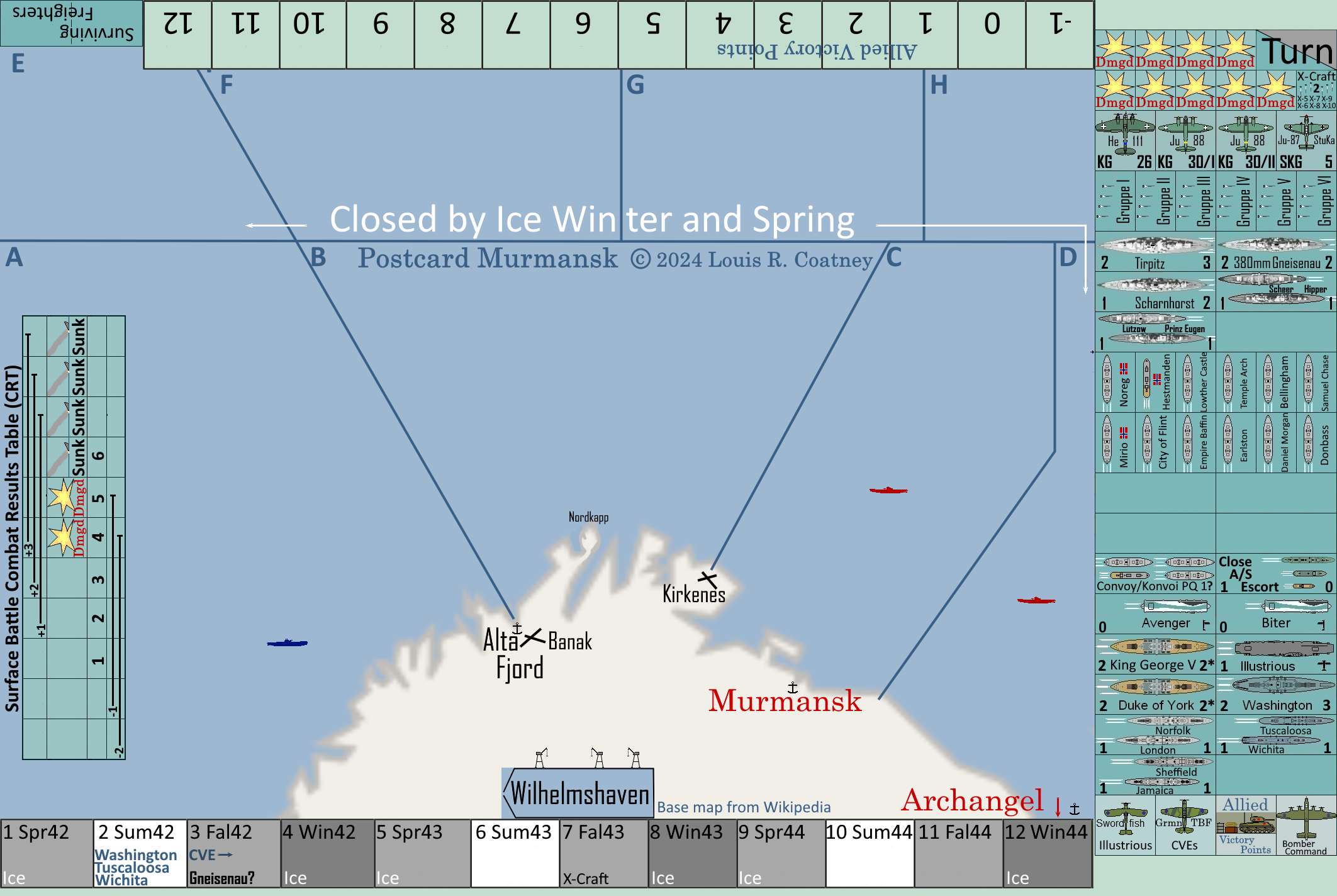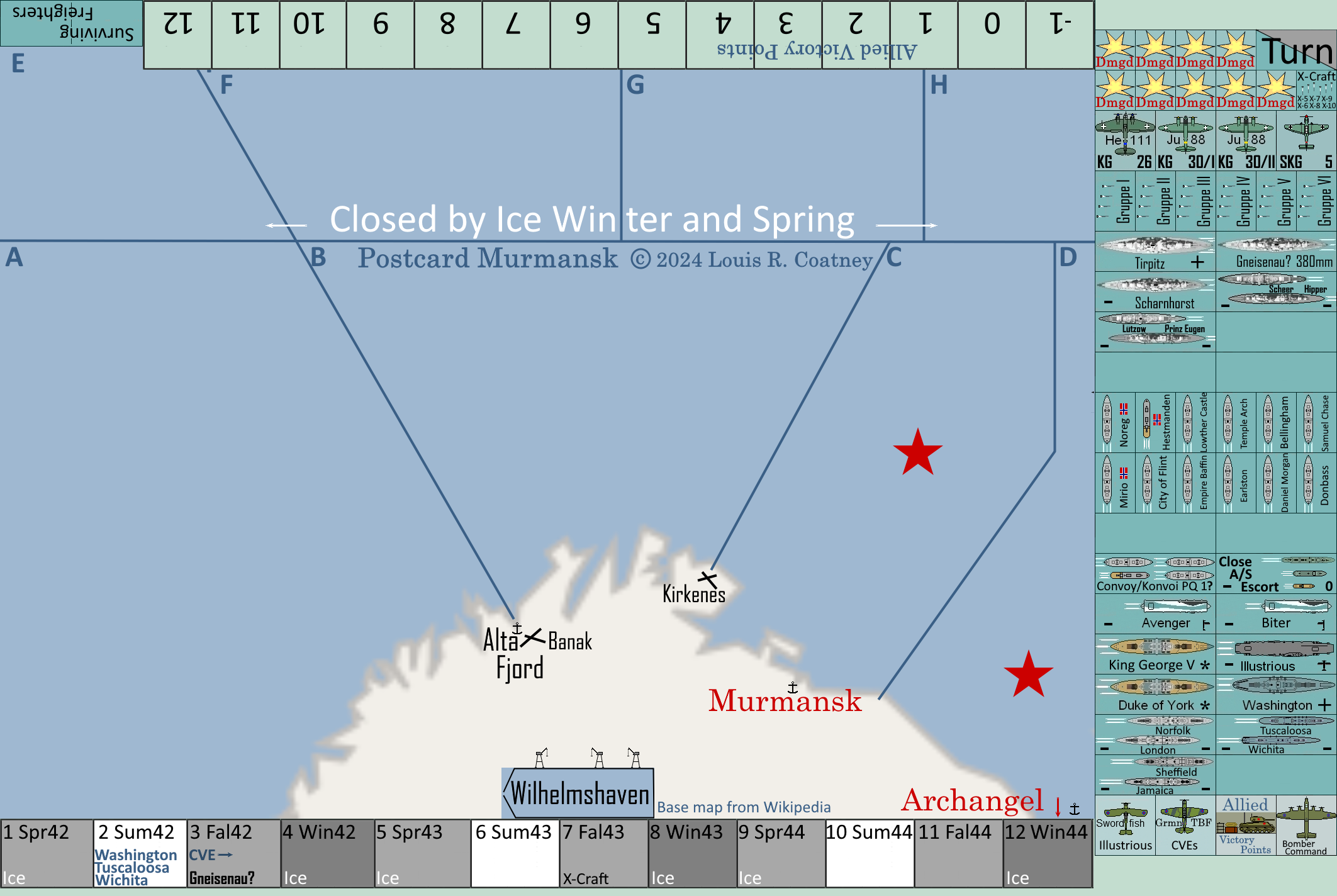 If you are a friend, and/or if you would like to share info and ideas about military and naval history and game designing and cardstock model shipbuilding, and/or you have any questions about Postcard Murmansk feel free to e-mail me at ELCOAT@Hotmail.com