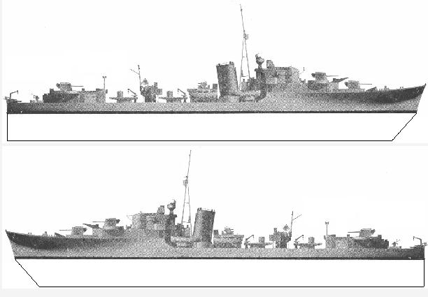 - "War Emergency" O class destroyers - 4" dual purpose guns: