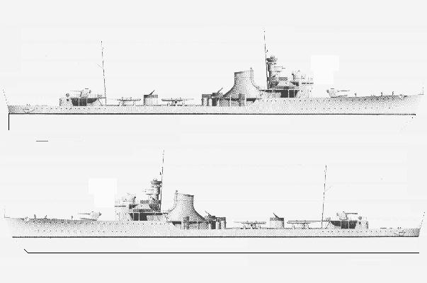 - "War Emergency" O class destroyers - 4" dual purpose guns: