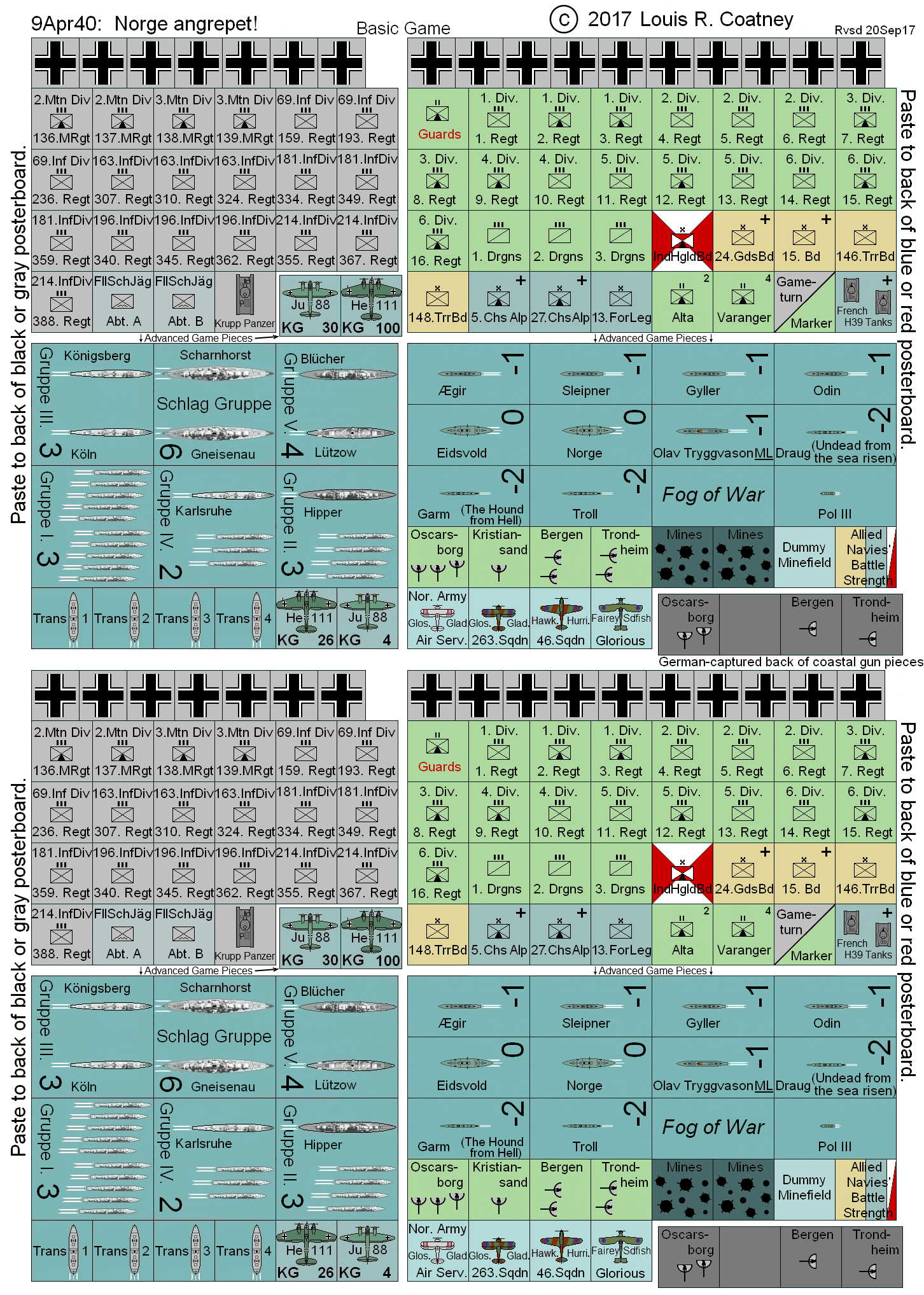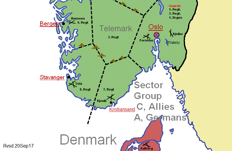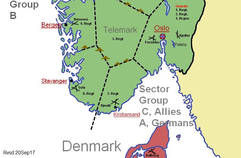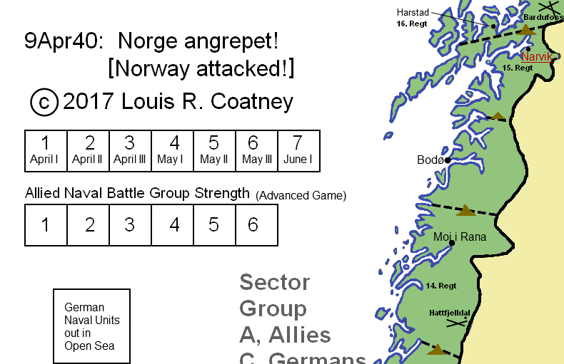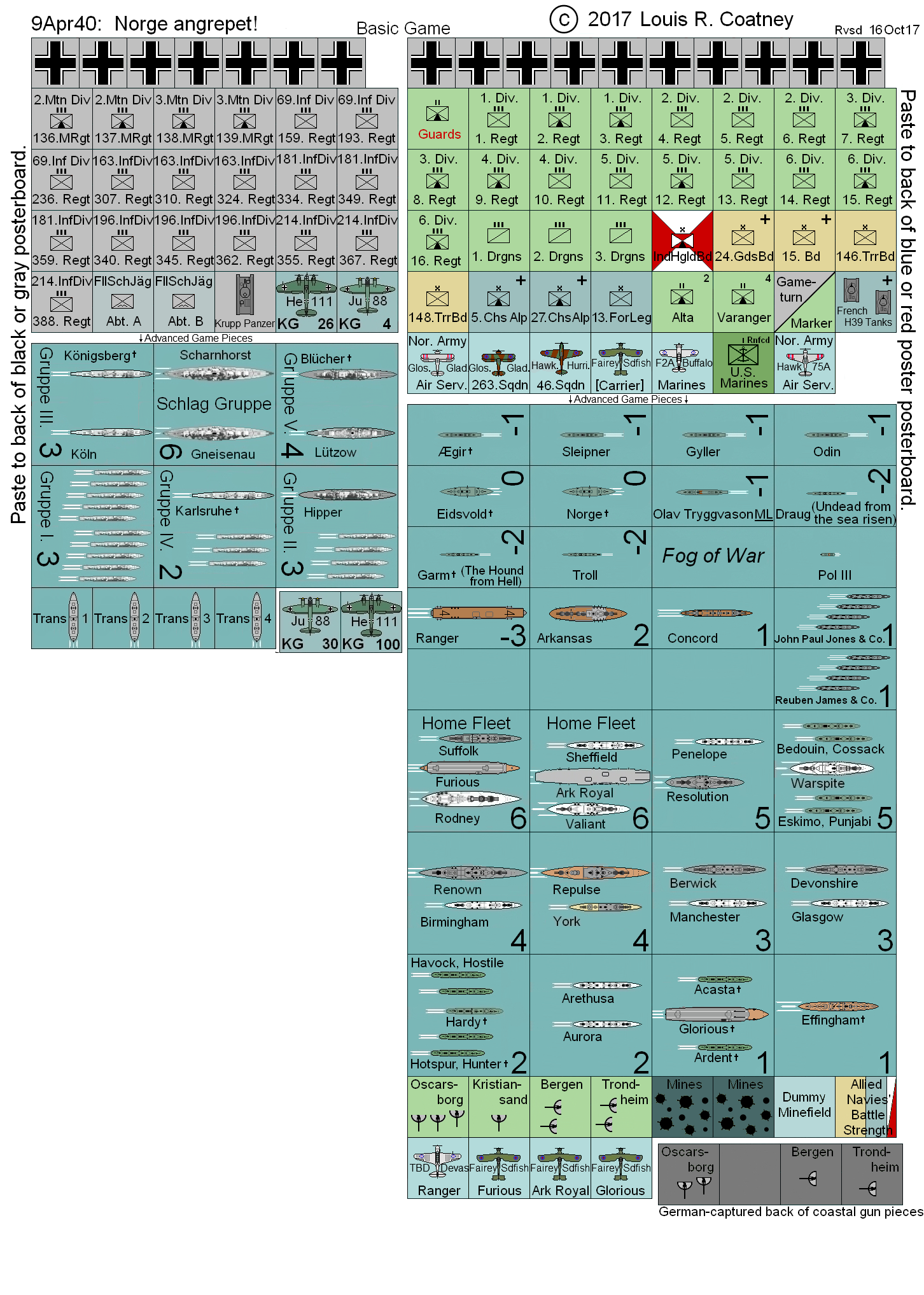 ... along with my personal thanks to Unni Berge and the historians of the excellent Norwegian Armed Forces Museum in Akershus Festning/Fortress and to Lørenskog and Skedsmo libraries'/bibliotekers librarians, as well to wargamers and historians Fred Forde, Tor Øyvind Mæhlum, Jack Greene (designer of the first Norway 1940 game, which is being revised and republished), and Eivind Vetlesen and Yngve Bækholt (the Norwegian designers of the excellent Kampen om Norge game, which has historical events/factors - and individual warship - cards to enliven play), for their advice, test-playing, and/or historical research assistance.
