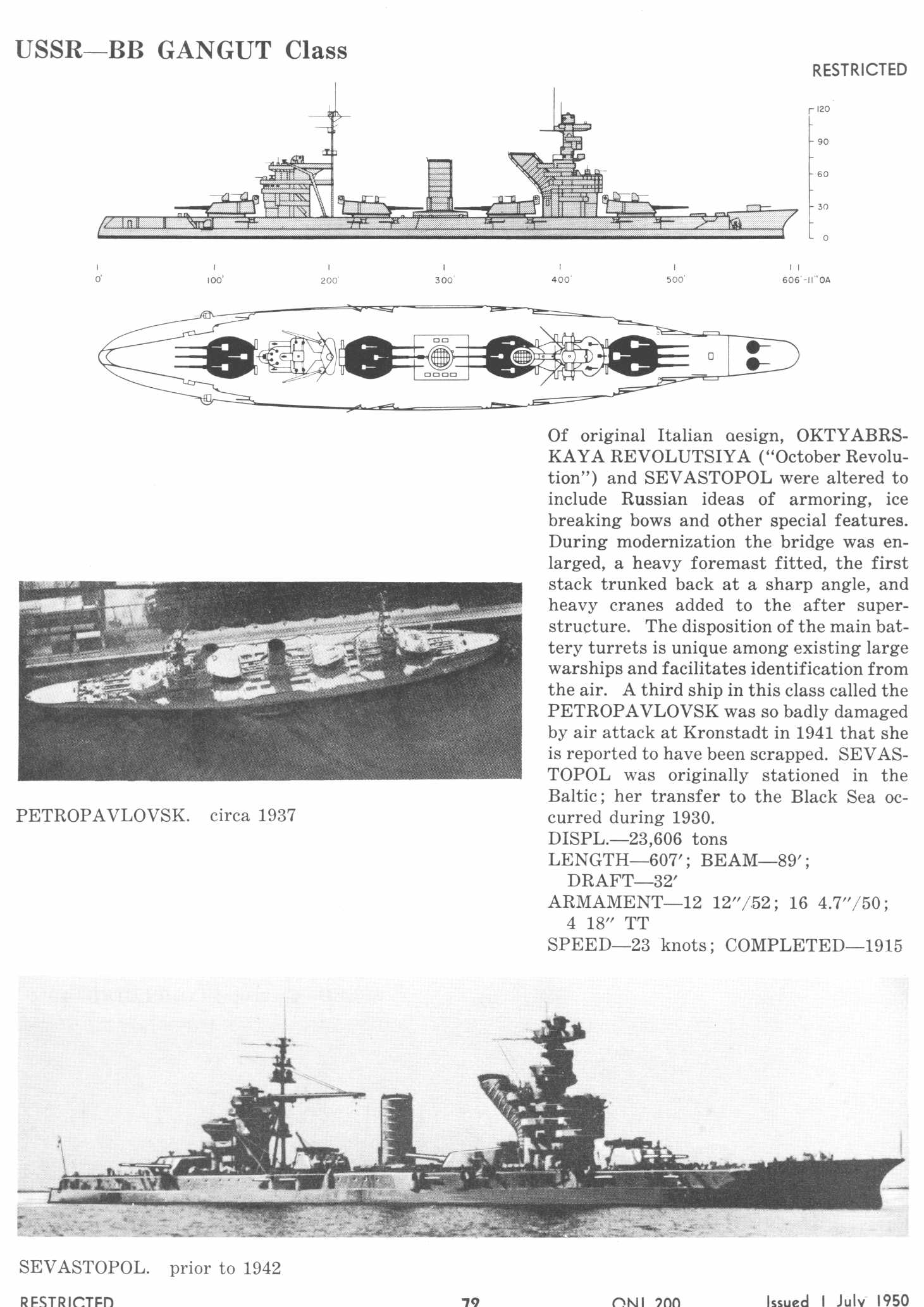 Here is the ONI drawing and entry for the Gangut class battleships, and you might want to see the "2-D models" of the ships I created, at 1:700, 1:1200, and 1:1800 scales. There are no 1:700 plastic models available of these ships.