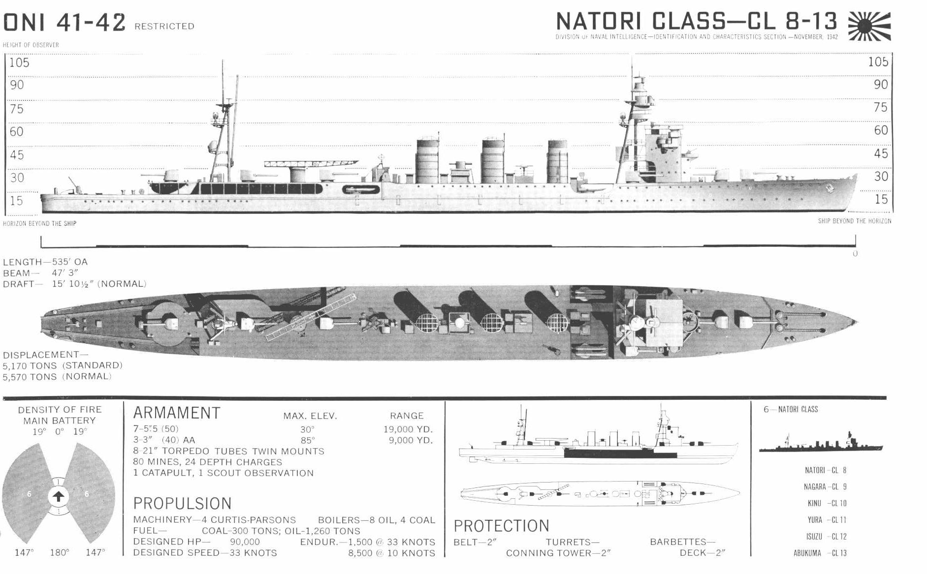 Although not as powerfully armed as the later Japanese fleet destroyers, these light cruisers could take more punishment, and they were often assigned to be flotilla leaders of (8) destroyers.