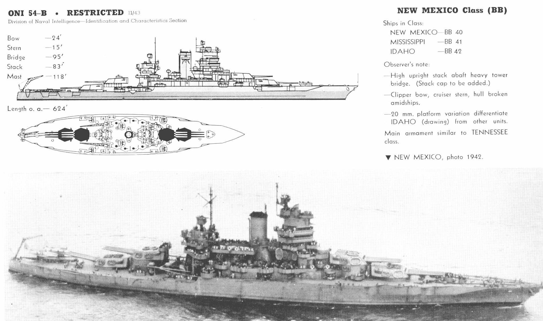 New Mexico, Mississippi, and Idaho were finished toward the end of World War I. In 1930-34, all three were rebuilt and re-engined, with an increase in armor.