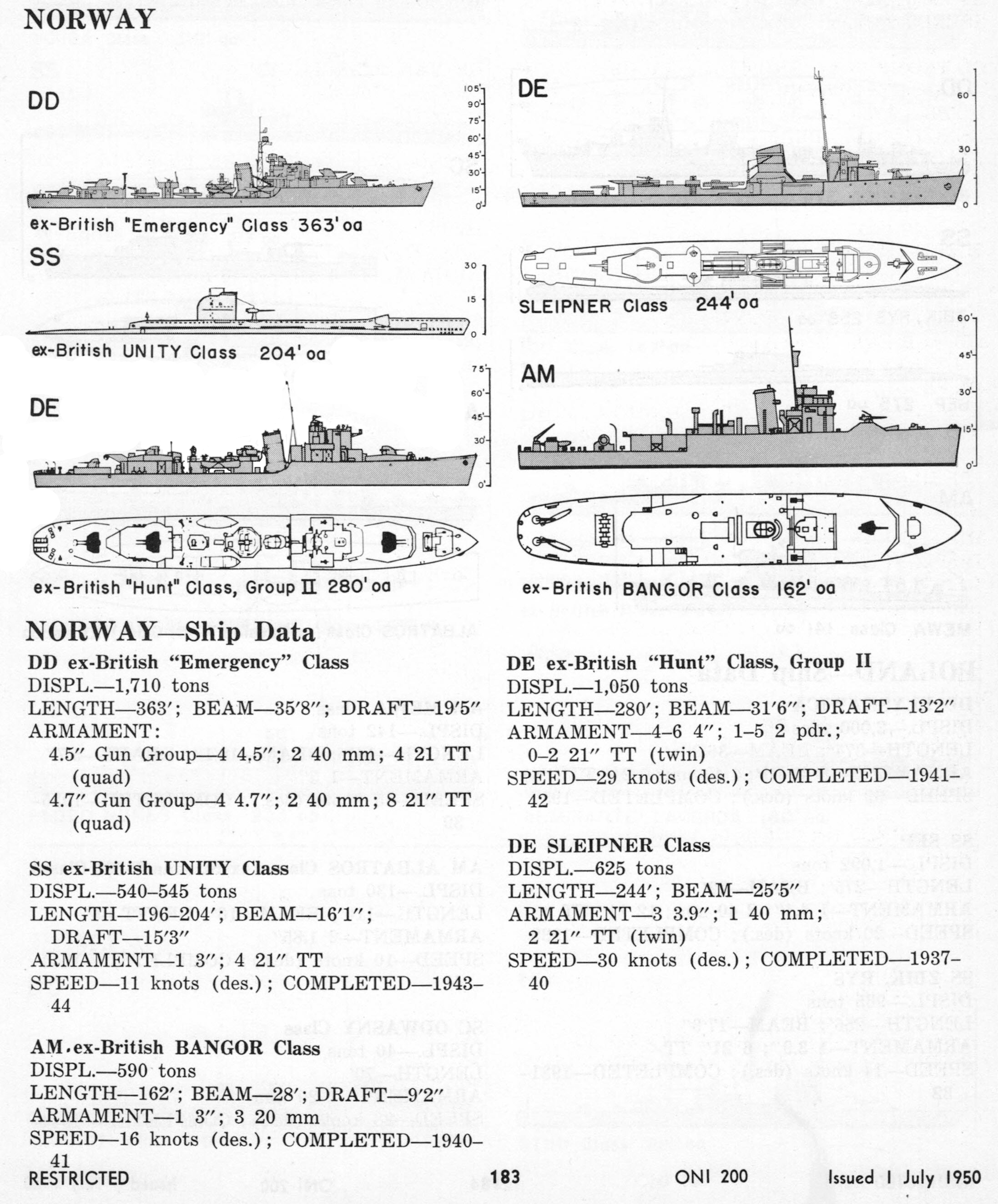 These mostly British-built ships were manned by Norwegian crews during the war. See also the larger drawings for the various classes in the Royal Navy section.