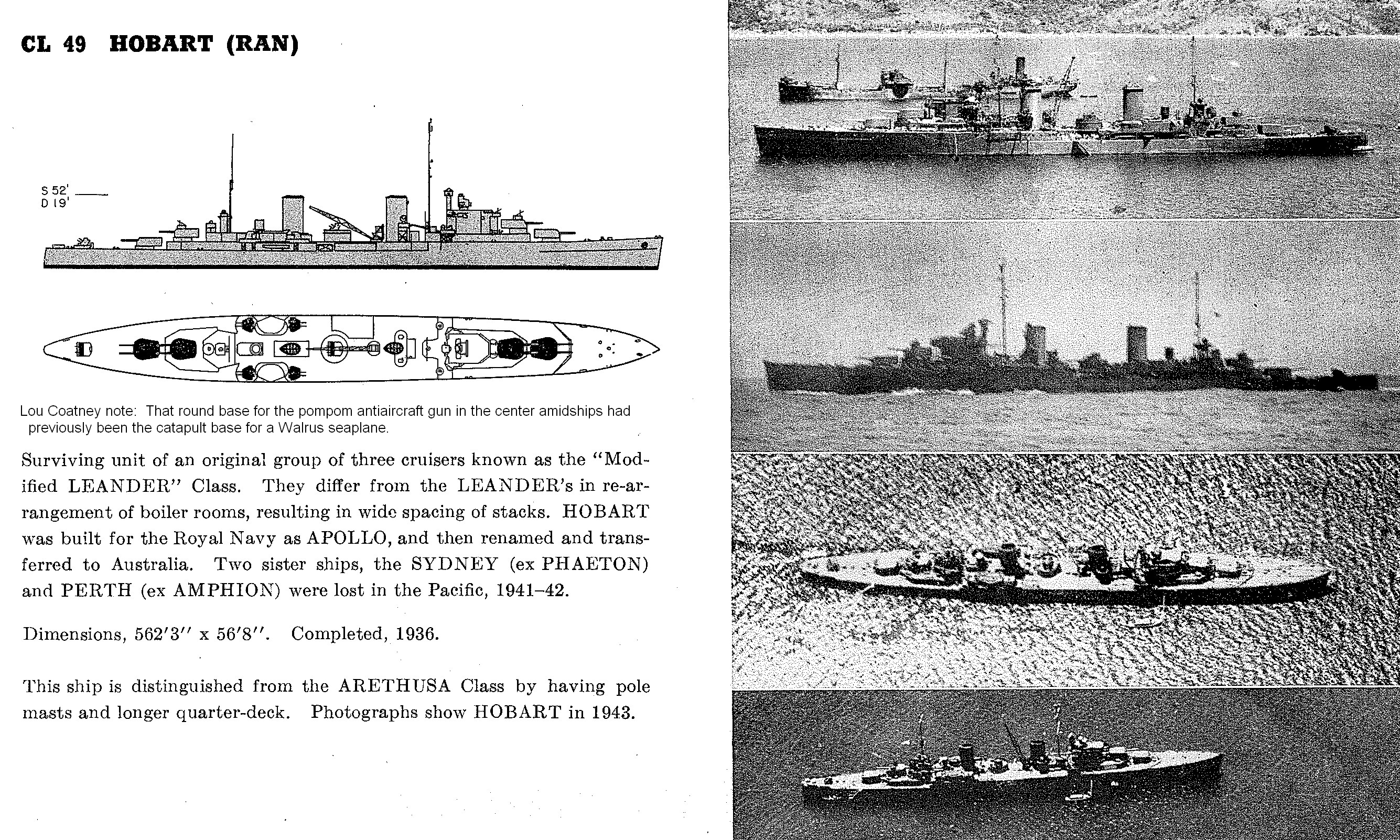 These were the last of the British prewar light cruisers with only twin 6" gun turrets. They had a little more space, and they were given to Australia.