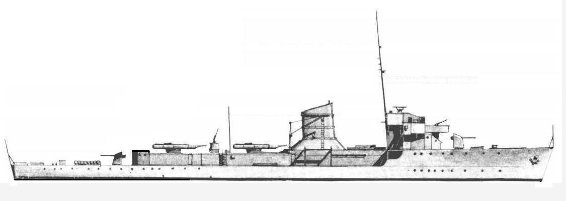 Although classed as a "destroyer" -- and probably meeting that definition by World War I standards -- the Sleipner class was very small for their time at only 237', with only 3 Bofors 4" guns and 2 21" torpedo tubes. (Gyller is supposed to have had 4, and I'm trying to find out where the other mount was positioned.) They were nonetheless considered very well designed and armed for their compact size.