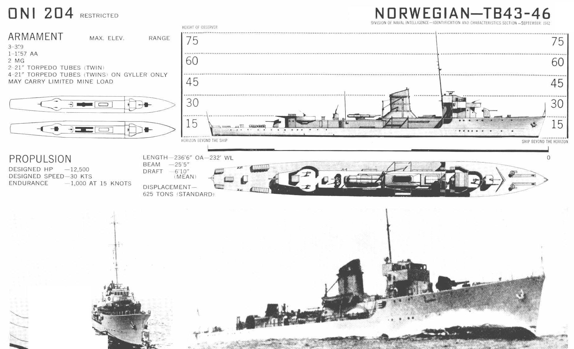 Nazi Germany's surprise attack on Denmark and Norway in April 1940 caught Norway's navy at anchor. However, Sleipner managed to get to sea and participated in the capture of a German freighter and armed trawler. Sistership Aegir was not so lucky, being bombed and beached, a total loss. After returning from a sortie, sisterships Gyller and Odin were captured at their dock upon the overrunning of Kristiansand and served in the German Kriegsmarine for the rest of the war: hence the class's appearance in ONI 202 ... and here. (They survived the war and were returned to Norway afterwards.)