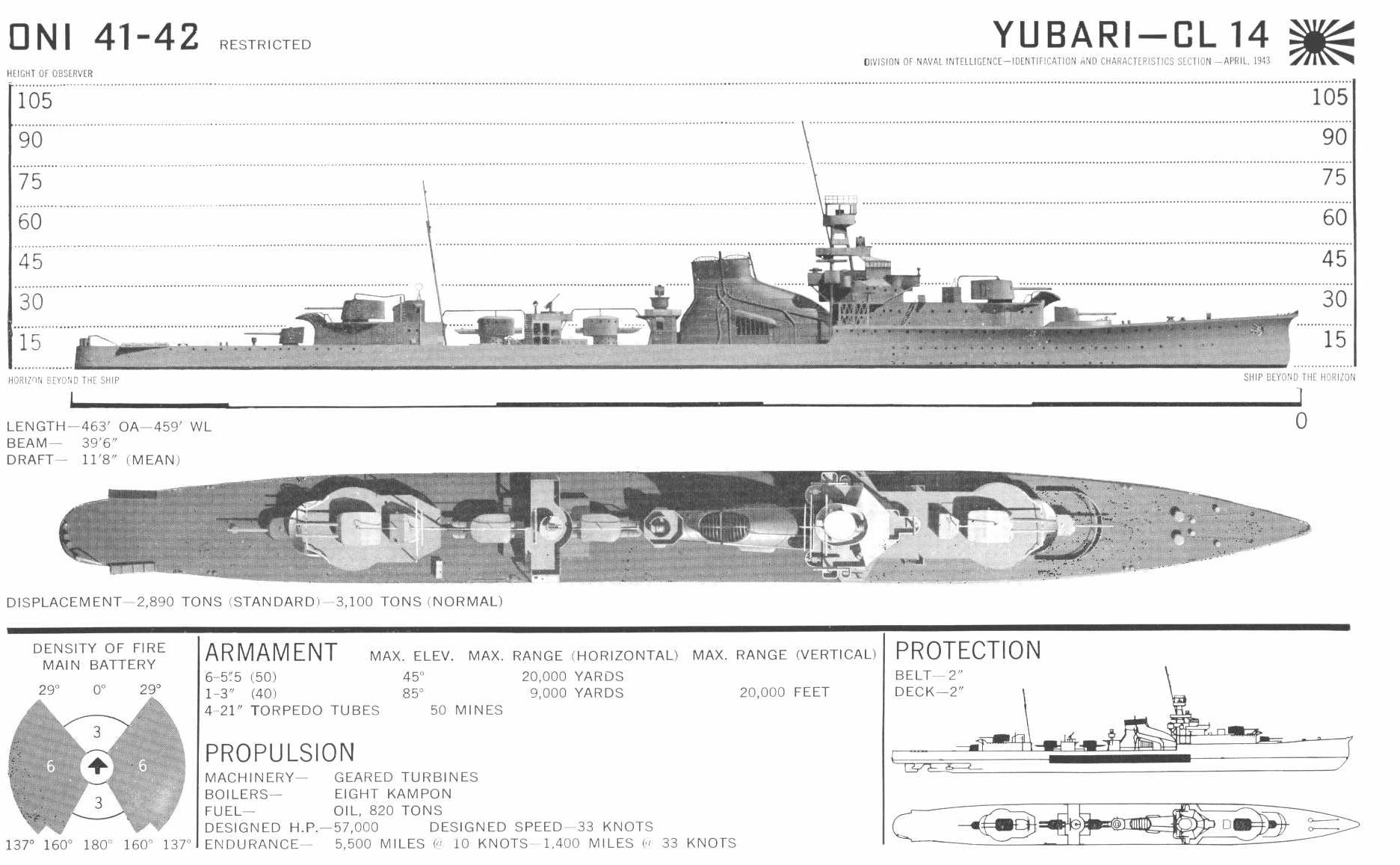In contrast to previous prewar Japanese light cruisers, all of Yubari's guns were superfiring. The principle would be widely applied.
